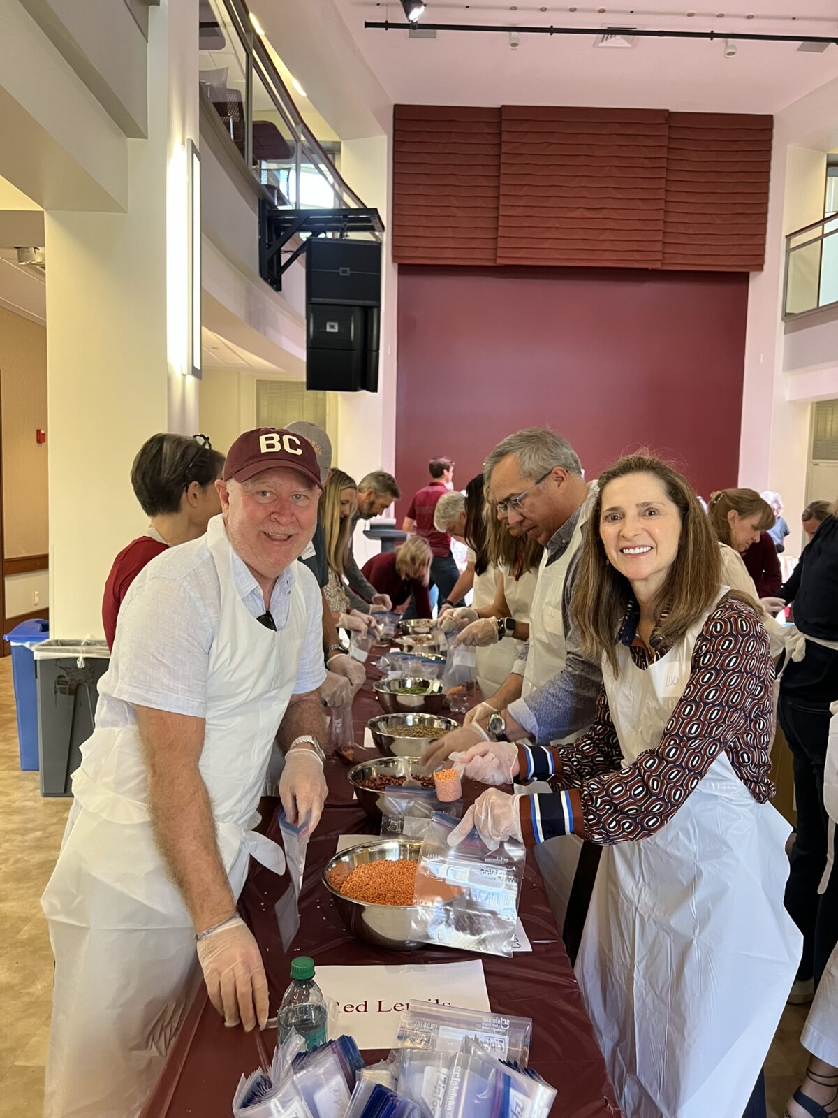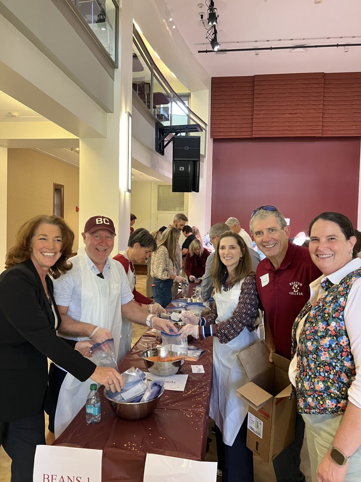 For the second year in a row, over 200 members of the Boston College Parents Leadership Council gathered on campus during Family Weekend to pack soup kits that were donated to Catholic Charities Boston.