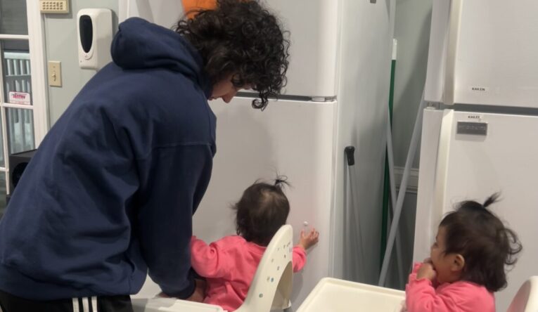 From the corner of her eye, Janelle watches her twin daughters babble in their high chairs as she prepares dinner at Brigid’s Crossing, Catholic Charities Boston’s shelter for young mothers in Merrimack Valley. Beside her, Kesha, a fellow resident, stir-fries steak and vegetables for herself and her son, filling the kitchen with the savory smells of a home-cooked meal. Others chat and unwind in the common room as their children color and play.
